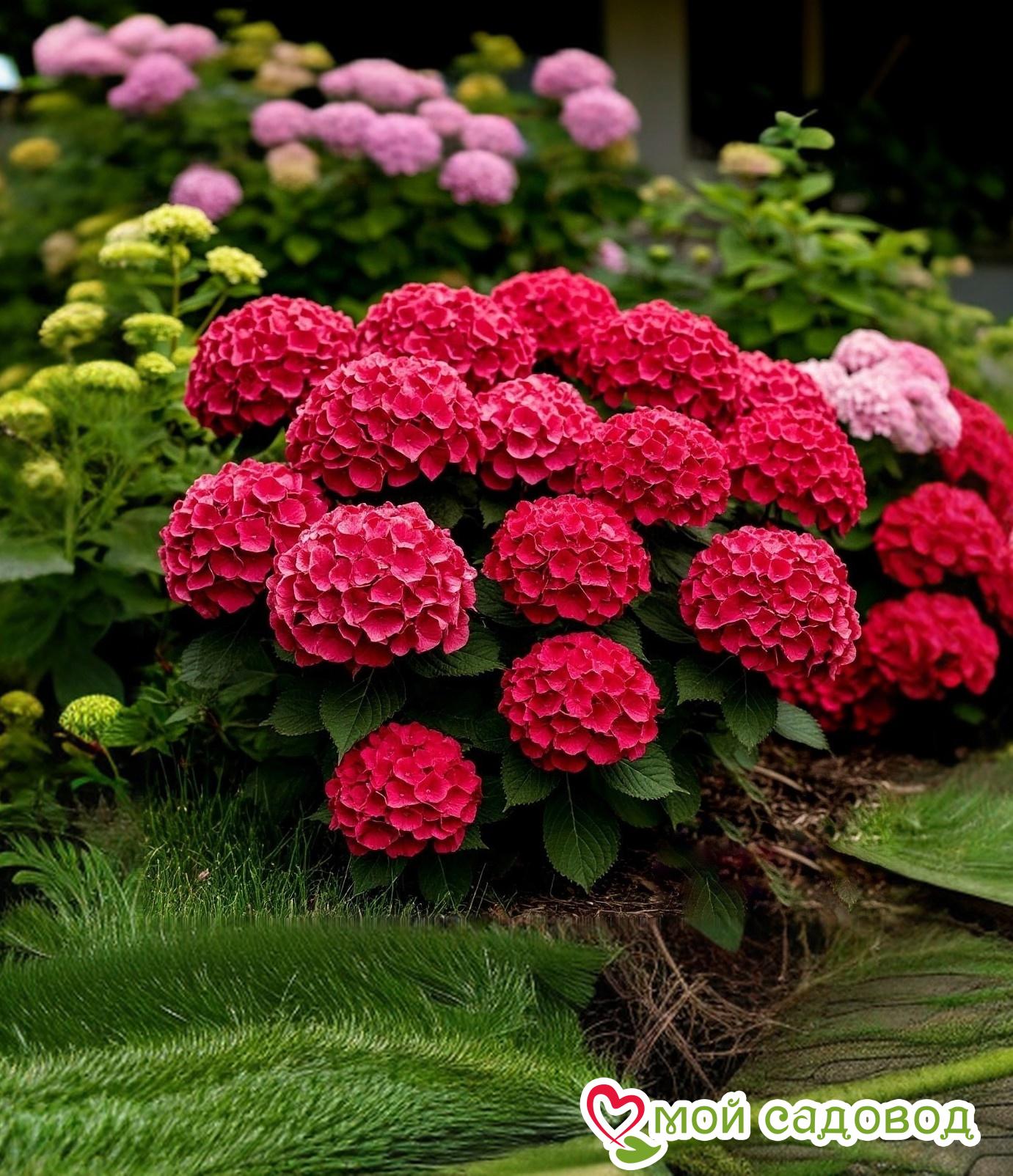 ПРЕИМУЩЕСТВА СОРТА: Продолжительность жизни 30 лет. Гортензия Ред Барон — многолетний крупнолистный кустарник. Растение имеет яркие соцветия с четырьмя лепестками. Цветок ценится своим ярким оттенком и гипоаллергенностью, т. к. не имеет запаха. Более того, этот сорт неприхотлив и не требует особого ухода, поэтому пользуется популярностью среди садоводов. Этот род является декоративным и быстрорастущим, поэтому идеально подходит для выращивания в садах и даже в комнатных условиях. Кустарник привлекает внимание не только своими красивыми соцветиями, которые могут быть белой, фиолетовой, розовой, голубой, зеленоватой или пёстрой окраски, но и густой листвой насыщенного цвета.